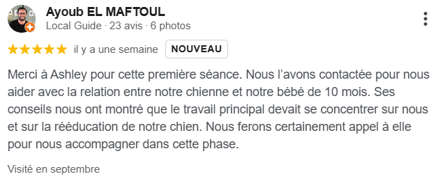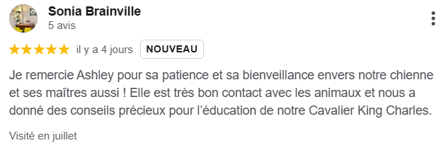 Ashley vous propose un accompagnement sur mesure pour vous aider à comprendre, éduquer et vivre en parfaite harmonie avec votre chien.